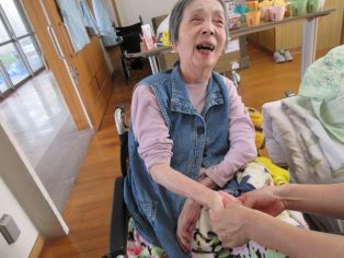 寒くなってきたので、入所者の方の血行増進と職員と入所者の方の触れ合う機会をもつためにハンドマッサージを実施しました。ラベンダーやバラの香りのボディクリームを使って「とても良い香り」「手が暖かくて気持ちいい」等、皆さんに喜んでいただきました。